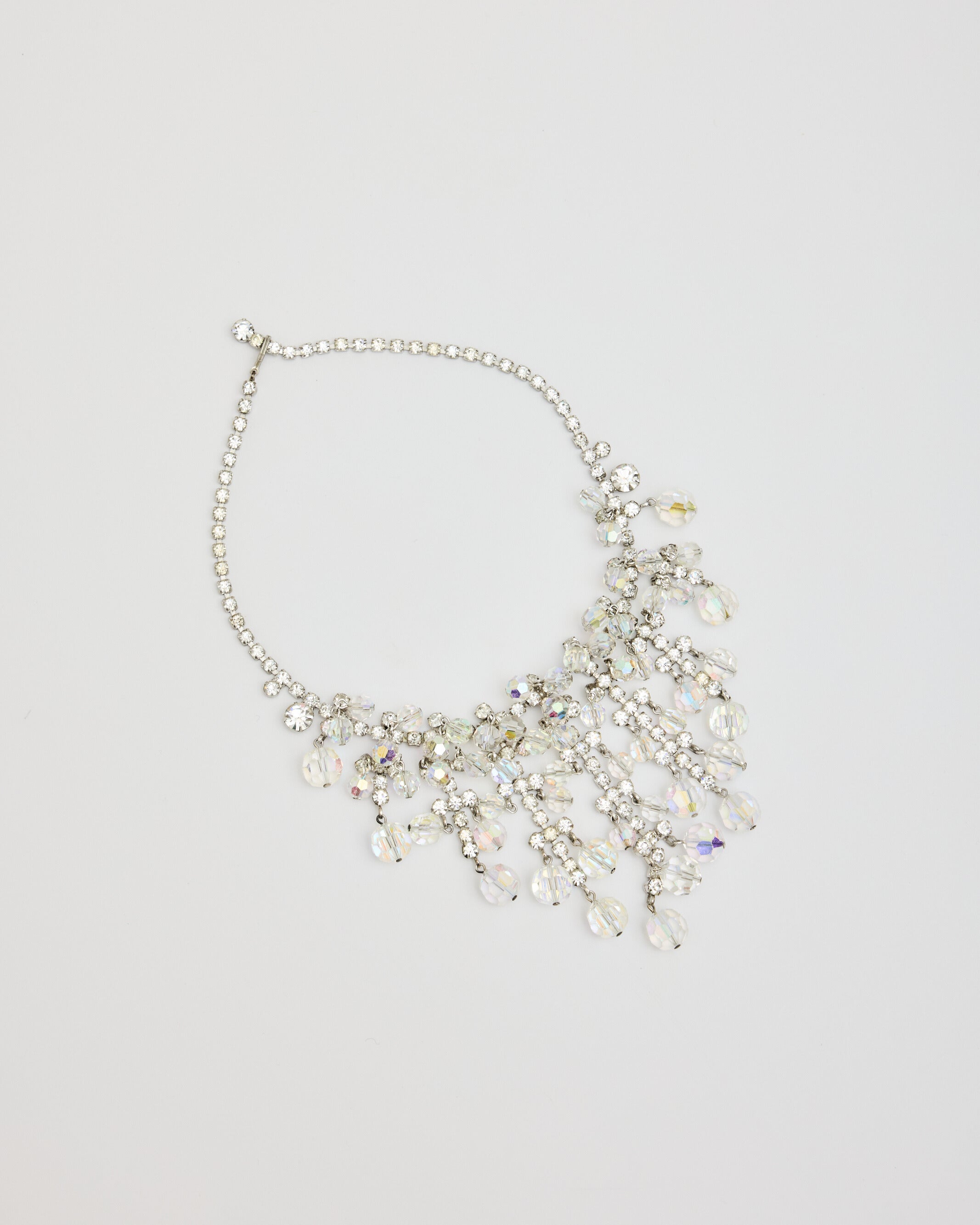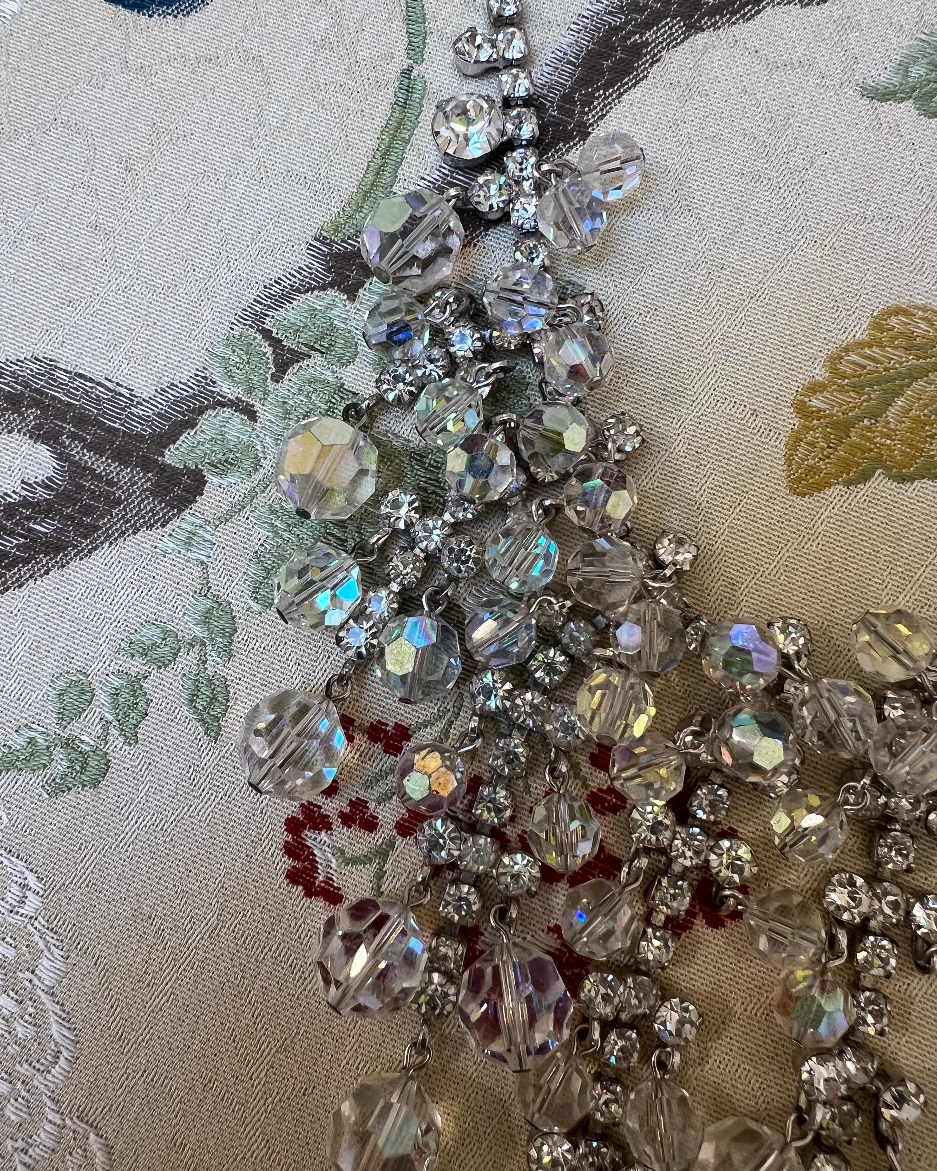 Silver Rhinestone and Beaded Waterfall Necklace
